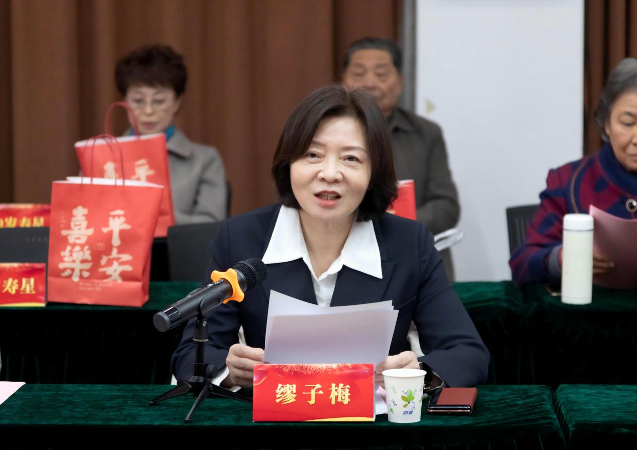 缪子梅在讲话中代表学校党政班子和全校教职员工向老同志们表达了真挚的问候和衷心的祝福。她表示,学校今日的成就离不开离退休老同志的卓越贡献。他们在风华正茂的年龄,将满腔热血和聪明才智无私奉献给了国家林业教育与科研事业,在各自的岗位上呕心沥血、辛勤耕耘,为学校事业发展壮大奠定了坚实基础,是南林的宝贵财富。她向老同志们简要通报了学校今年取得的成果和"一校三区"的建设情况。她表示,学校将继续认真落实老同志各项政治待遇和生活待遇,持续推进校园基础设施修缮与改造,加强平安校园建设,不断优化校园景观和文化环境,为实现离退休"六个老有"工作目标创造更好的条件。