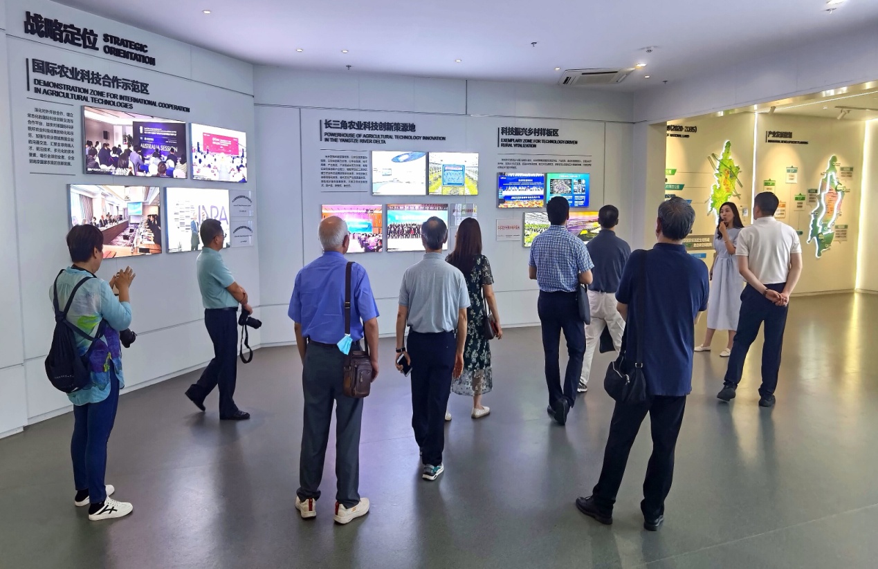 徐副区长对老科协一行的到来表示热烈欢迎,对参观考察做了周到安排。老科协一行首先参观了南京白马国家农业高新技术示范区(简称农高区)展览馆。南京农高区位于南京市溧水区白马镇,同时还是国际农业科技合作示范区、国家农业高新技术产业示范区和长三角农业科技创新策源地,也是长三角区域以及我国发达地区中唯一的"农高区"。南京农高区以绿色智慧农业为主题,以生物农业为主导产业,协同推进农产品特色加工、农业智能装备制造、农业科技服务业,目前已初步形成了以生物农业、食品加工为主导的现代农业产业体系,建成黑莓、蓝莓、有机农产品等特色产业基地达到11.5万亩,集聚了食品精深加工、智能装备制造等涉农企业近400家。